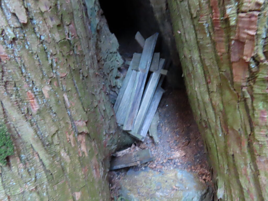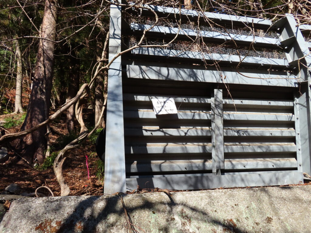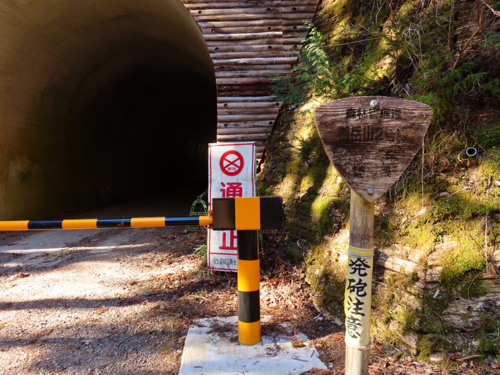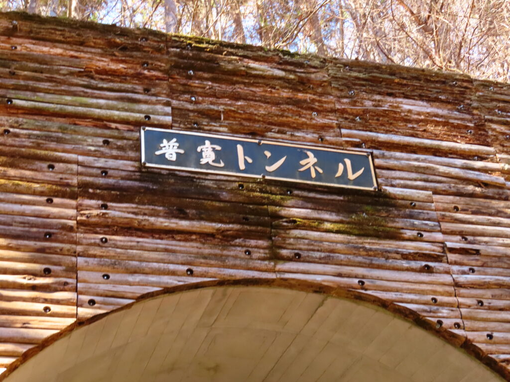 登山道の途中、林道に差し掛かると、【普寛行者】の名前のついたトンネルがありました。